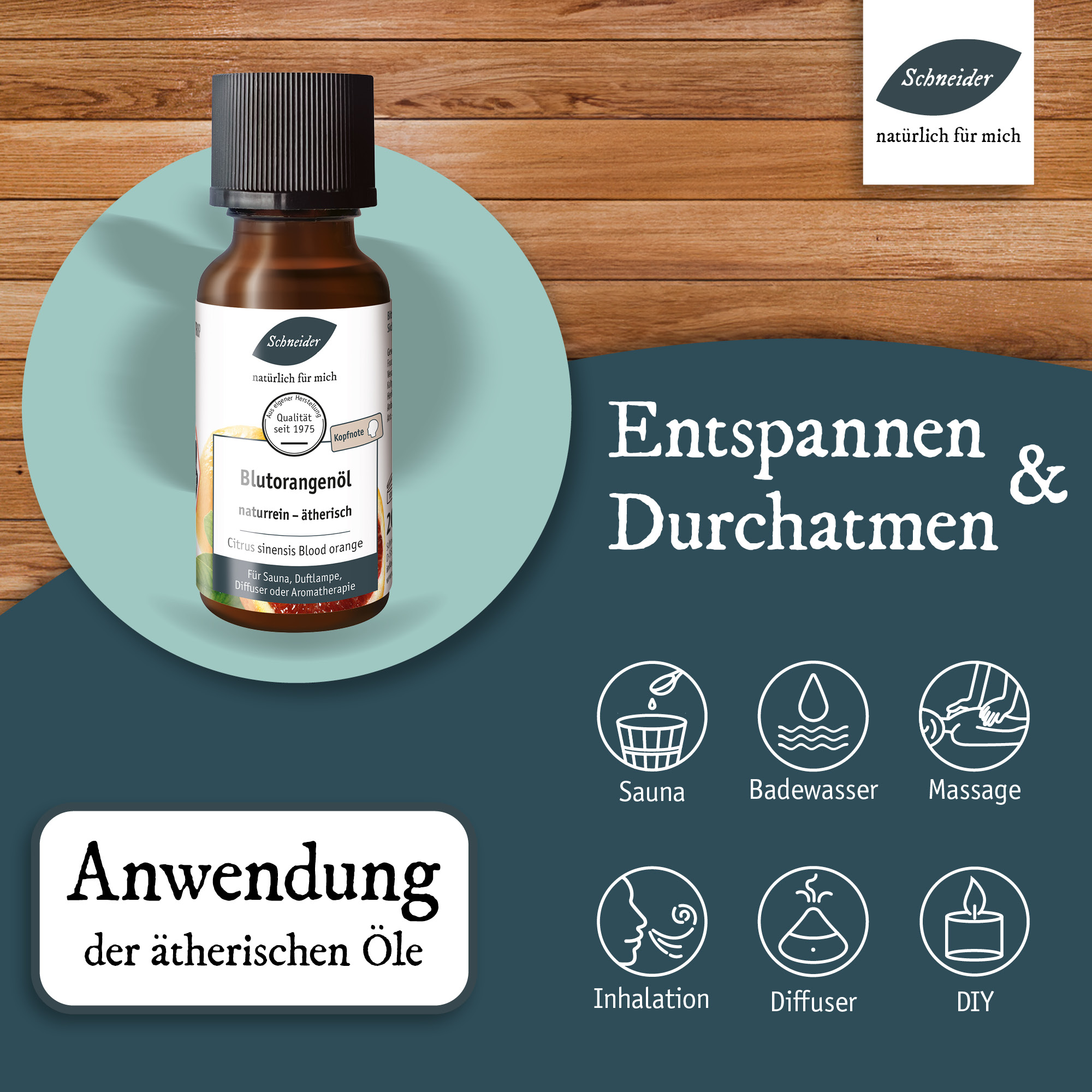 Anwendung: wenige Tropfen in Massageöl, in das Badewasser oder die Duftlampe, besonders beliebt in der Sauna