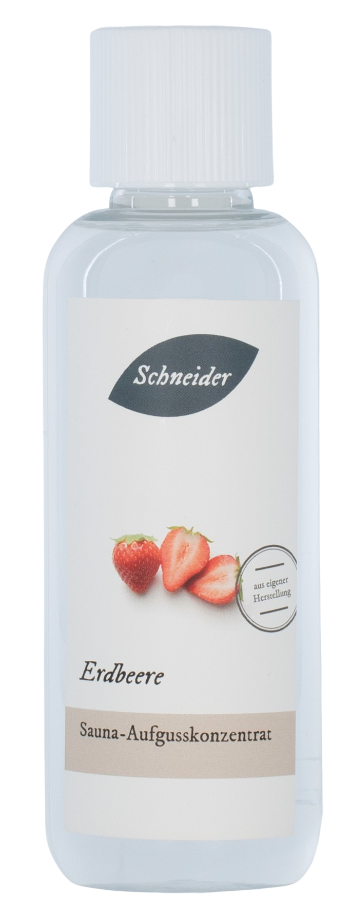 Erleben Sie besondere Momente mit dem nach eigener Rezeptur hergestellten Saunaaufguss Erdbeere. Lassen Sie sich vom saftig-süßen Duft reifer Erdbeeren in Kombination mit der angenehmen Frische von Menthol verführen. Das verspricht Entspannung pur! Der Genuss von frischen Erdbeeren nach dem Aufguss macht das Erlebnis perfekt! Anwendung: Die Dosierung der Aufgüsse kann abhängig sein von der Größe der Sauna, der Leistung der Heizelemente, den Vorlieben der Anwender und der Intensität der einzelnen Inhaltsstoffe (wie ätherischen Ölen, Ölgemischen oder Duftölen). Als Richtwert empfehlen wir ein bis zwei Esslöffel voll Aufgusskonzentrat oder 20 bis 25 ml Aufgusskonzentrat pro Liter Aufgusswasser. Je nach Belieben können Sie die Dosierung anpassen. Saunaaufgusskonzentrate sind sparsam zu verwenden und sollten nie pur auf die Aufgusssteine oder Heizelemente gegeben werden.