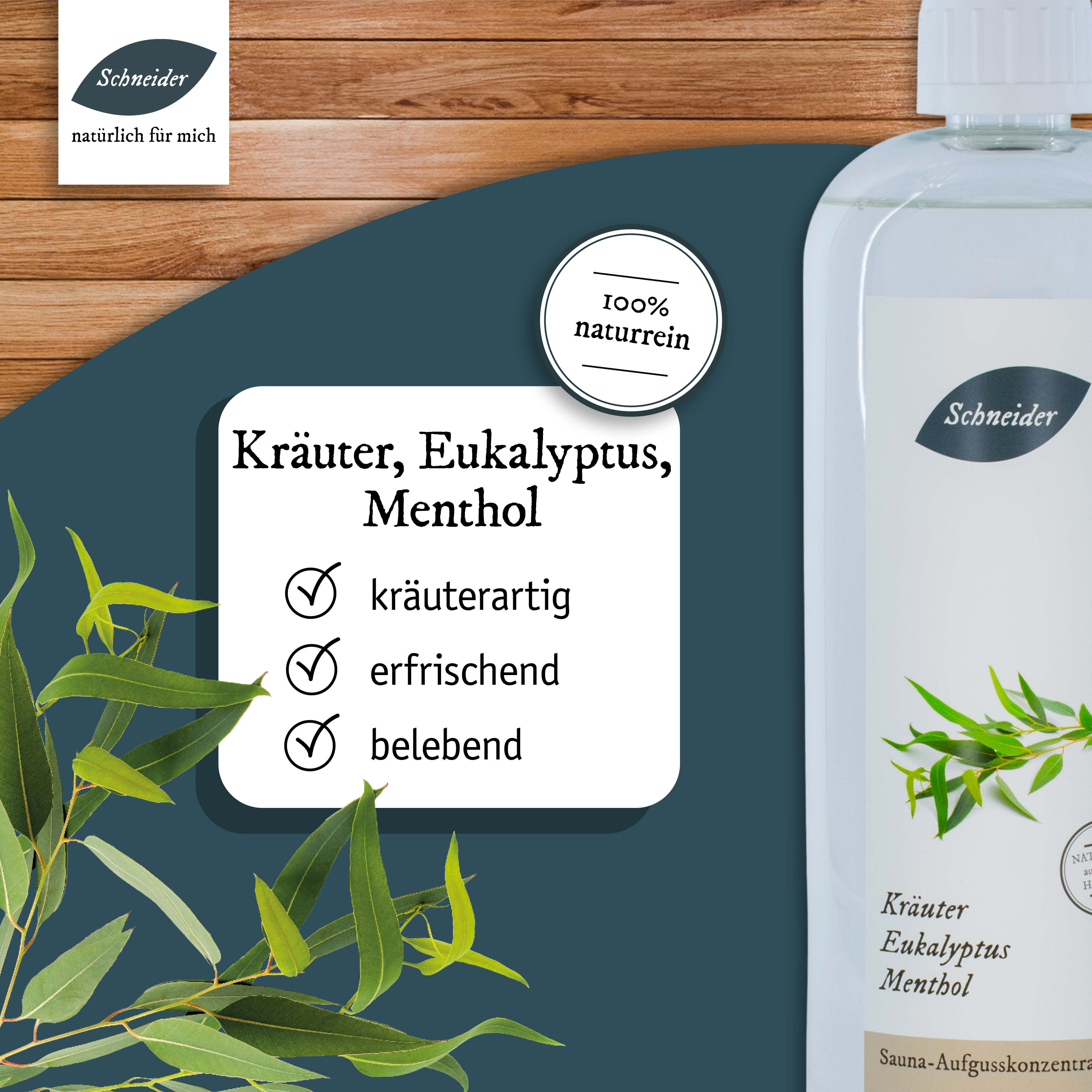 Der „Klassiker“ unter den Saunaaufgüssen! Ein rundum perfektes, ätherisches Dufterlebnis verspricht der Saunaaufguss Kräuter/Eukalyptus/Menthol nach eigener Rezeptur. Eukalyptus kann dabei atmungserweiternd wirken und tiefer durchatmen lassen. Zudem genießen Sie dank der 37 verschiedenen Alpenkräuteröle mit jedem Atemzug den Duft der Berge. Atmen Sie tief durch und fühlen Sie sich frei! Ein Must-have in jeder Sauna! Anwendung: Die Dosierung der Aufgüsse kann abhängig sein von der Größe der Sauna, der Leistung der Heizelemente, den Vorlieben der Anwender und der Intensität der einzelnen Inhaltsstoffe (wie ätherischen Ölen, Ölgemischen oder Duftölen). Als Richtwert empfehlen wir ein bis zwei Esslöffel voll Aufgusskonzentrat oder 20 bis 25 ml Aufgusskonzentrat pro Liter Aufgusswasser. Je nach Belieben können Sie die Dosierung anpassen. Saunaaufgusskonzentrate sind sparsam zu verwenden und sollten nie pur auf die Aufgusssteine oder Heizelemente gegeben werden.