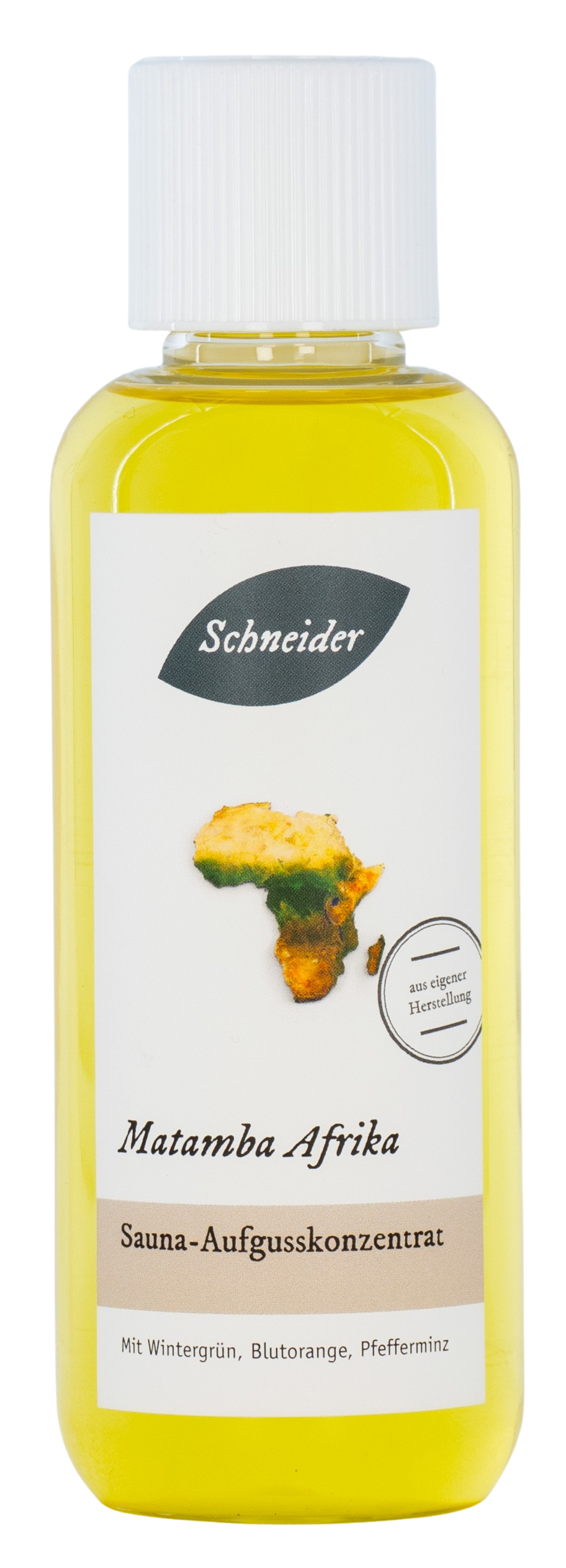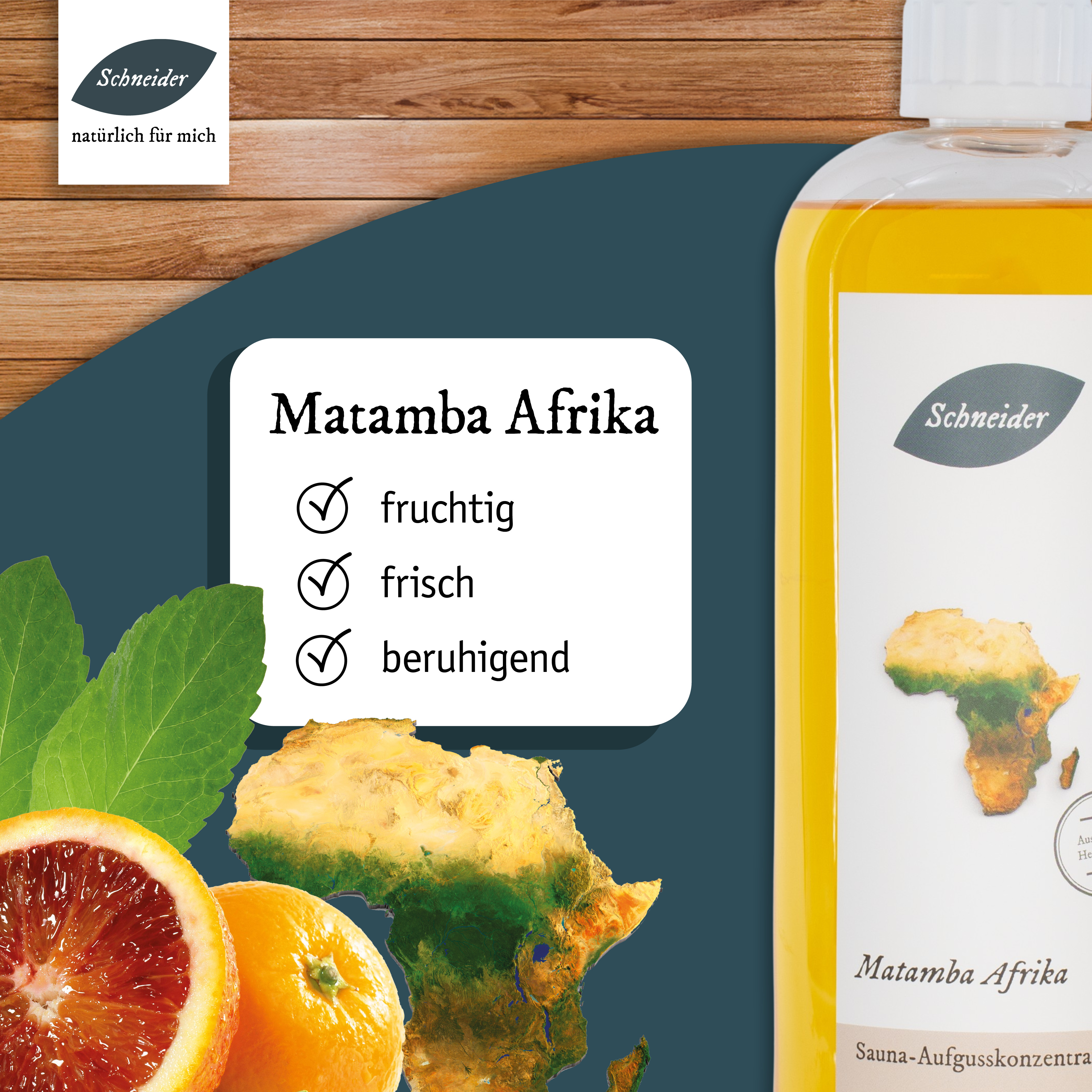Matamba Afrika: minzig-fruchtiger Saunaaufguss aus eigener Herstellung mit Blutorange, Wintergrün und Pfefferminz