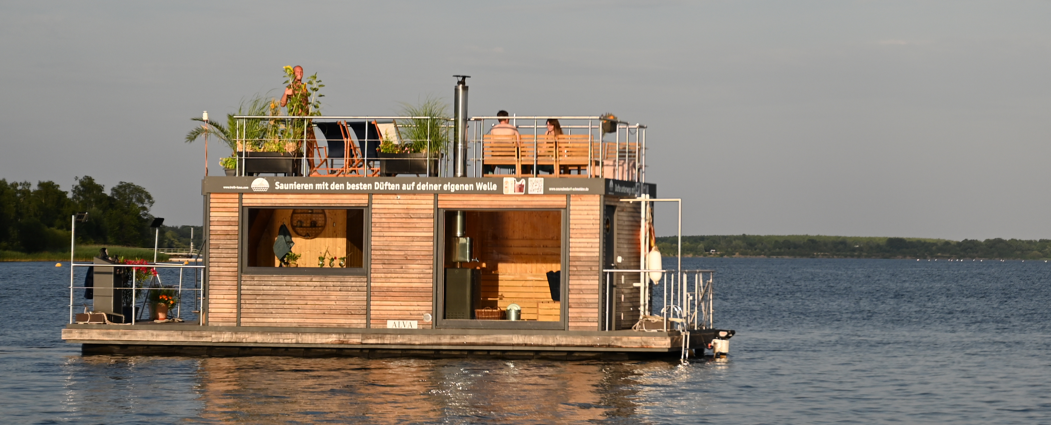 Sauna-, See- und Badespaß. Das exklusive Saunafloß - Erlebnis am und auf dem Senftenberger See.