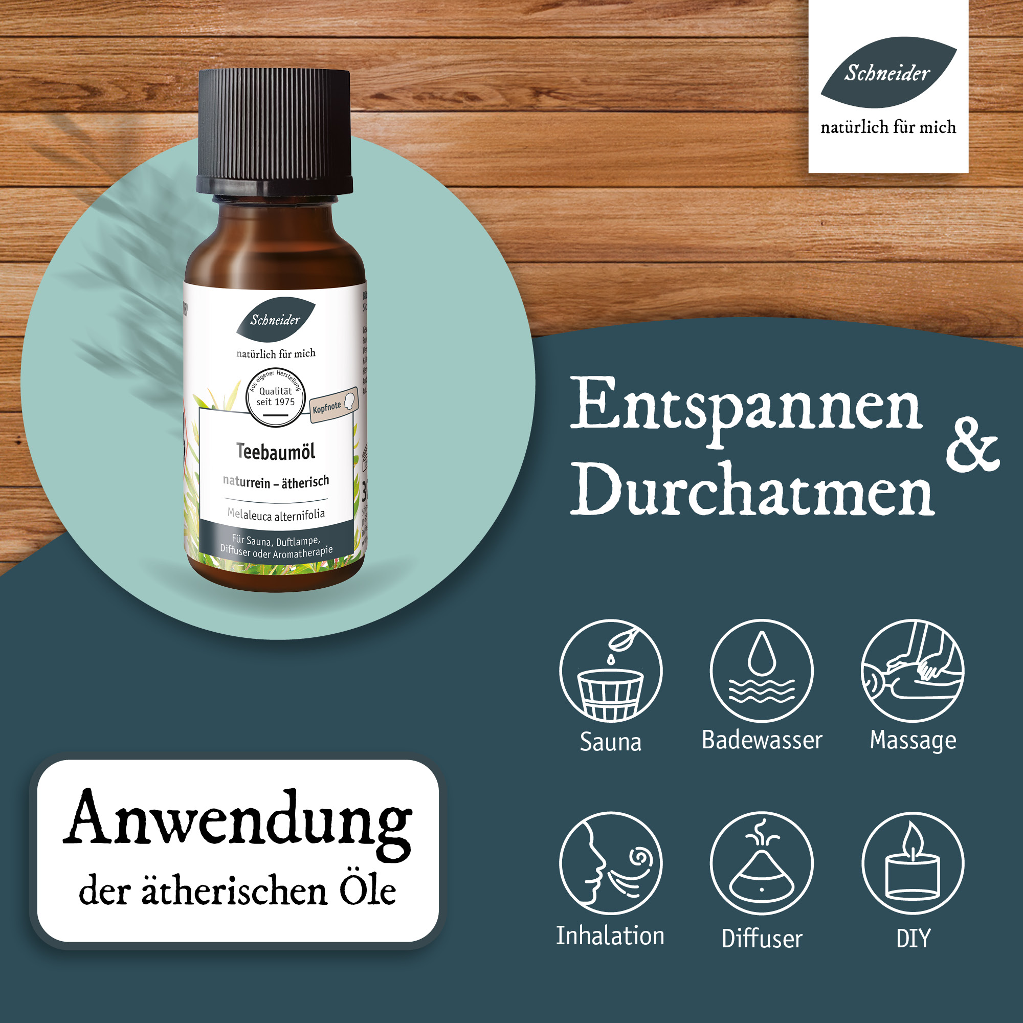 Anwendung: wenige Tropfen in Massageöl, in das Badewasser oder die Duftlampe, besonders beliebt in der Sauna