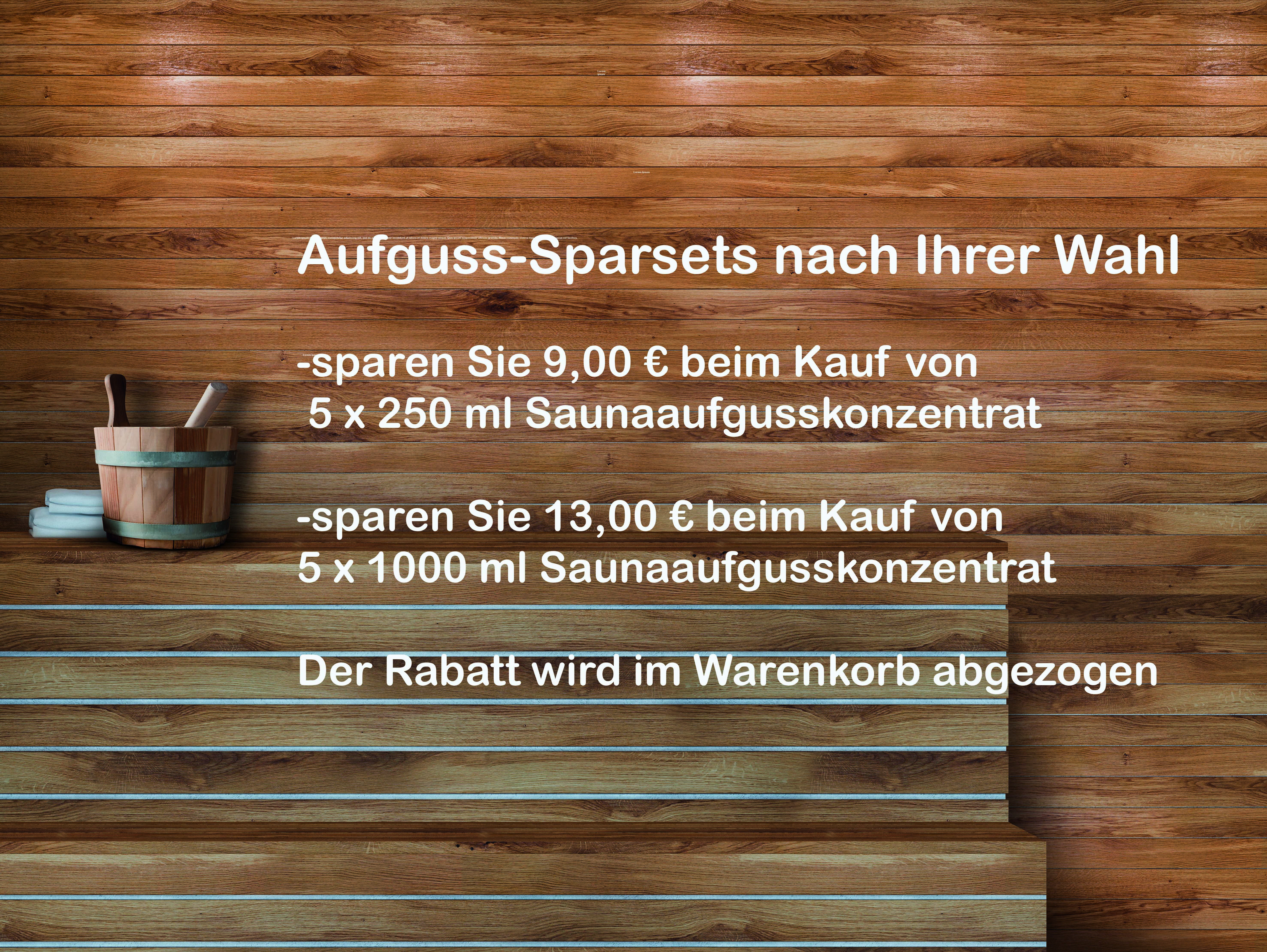 Weitere Vorteile unserer Saunaaufgüsse sind der länger anhaltende Duft und die besondere Ergiebigkeit.