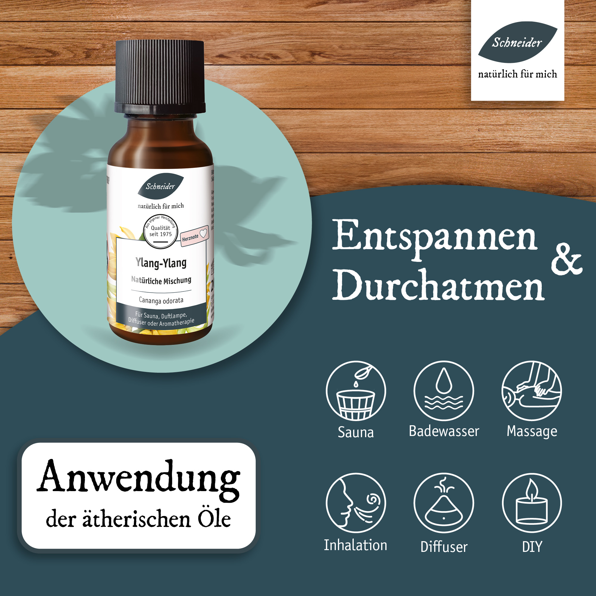 Anwendung: wenige Tropfen in Massageöl, in das Badewasser oder die Duftlampe, besonders beliebt in der Sauna