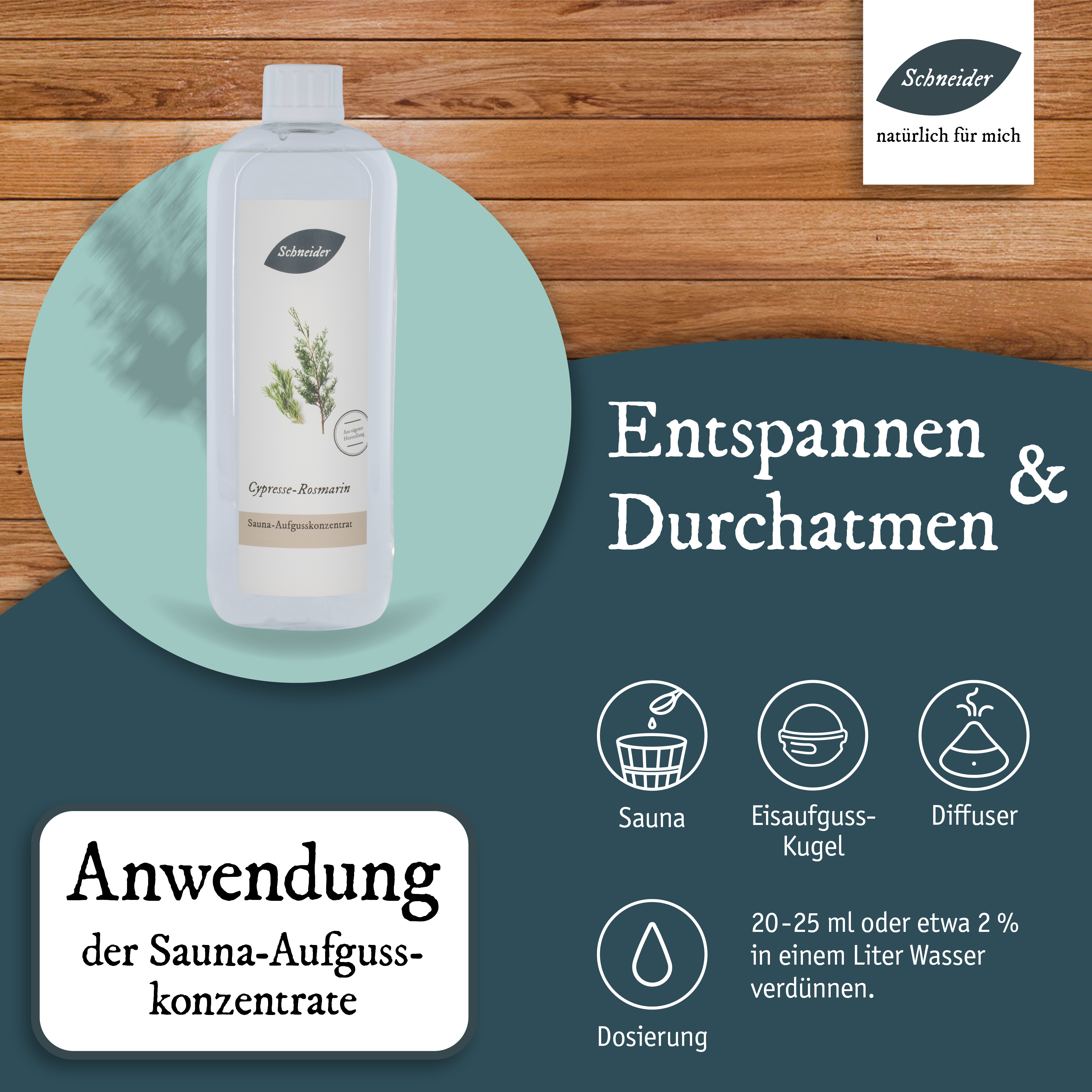 Eigenschaften "Saunaaufguss Cypresse-Rosmarin (Aufgusskonzentrat) 250 ml"