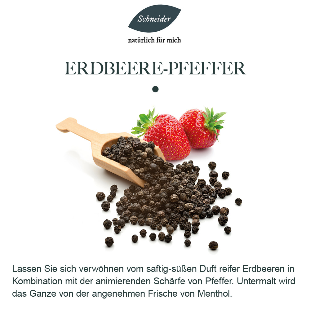 Erdbeere-Pfeffer: süßlich-pikanter Saunaaufguss aus eigener Herstellung mit Erdbeere, Pfeffer und Menthol