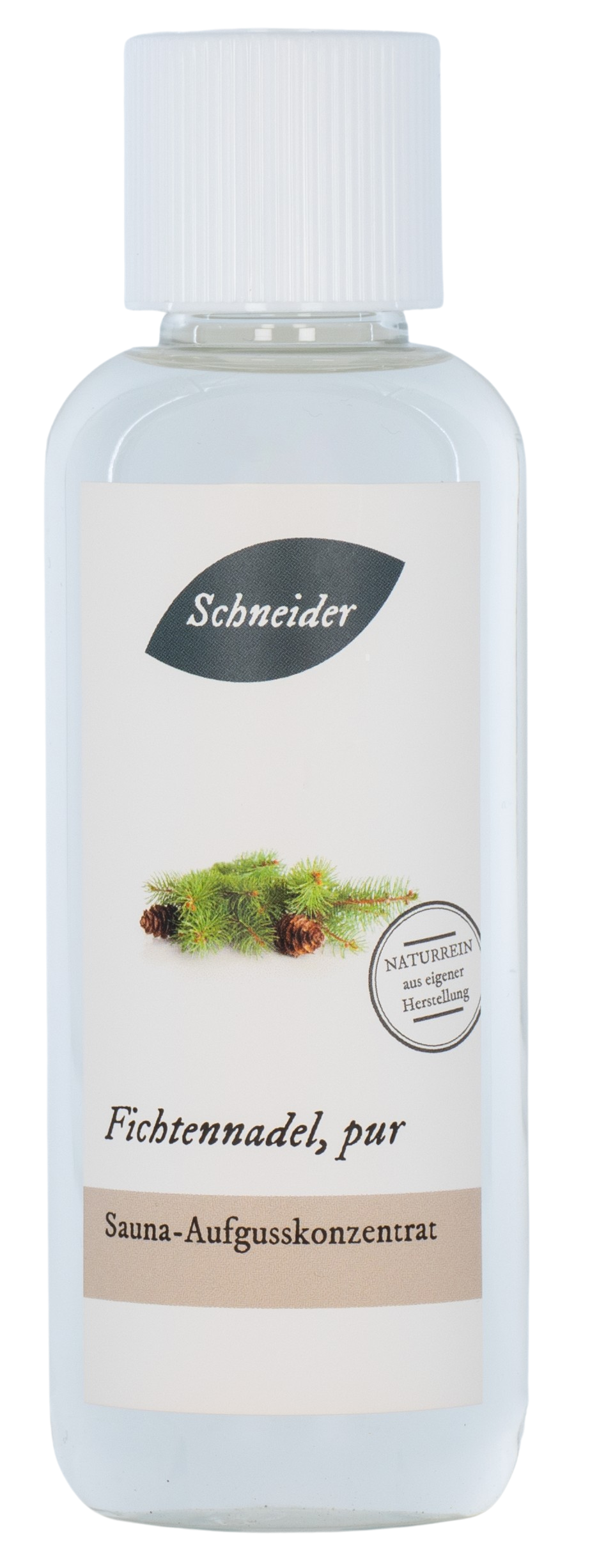 Fichtennadel pur: waldig-frischer Saunaaufguss aus naturreinem Fichtennadelöl und eigener Herstellung