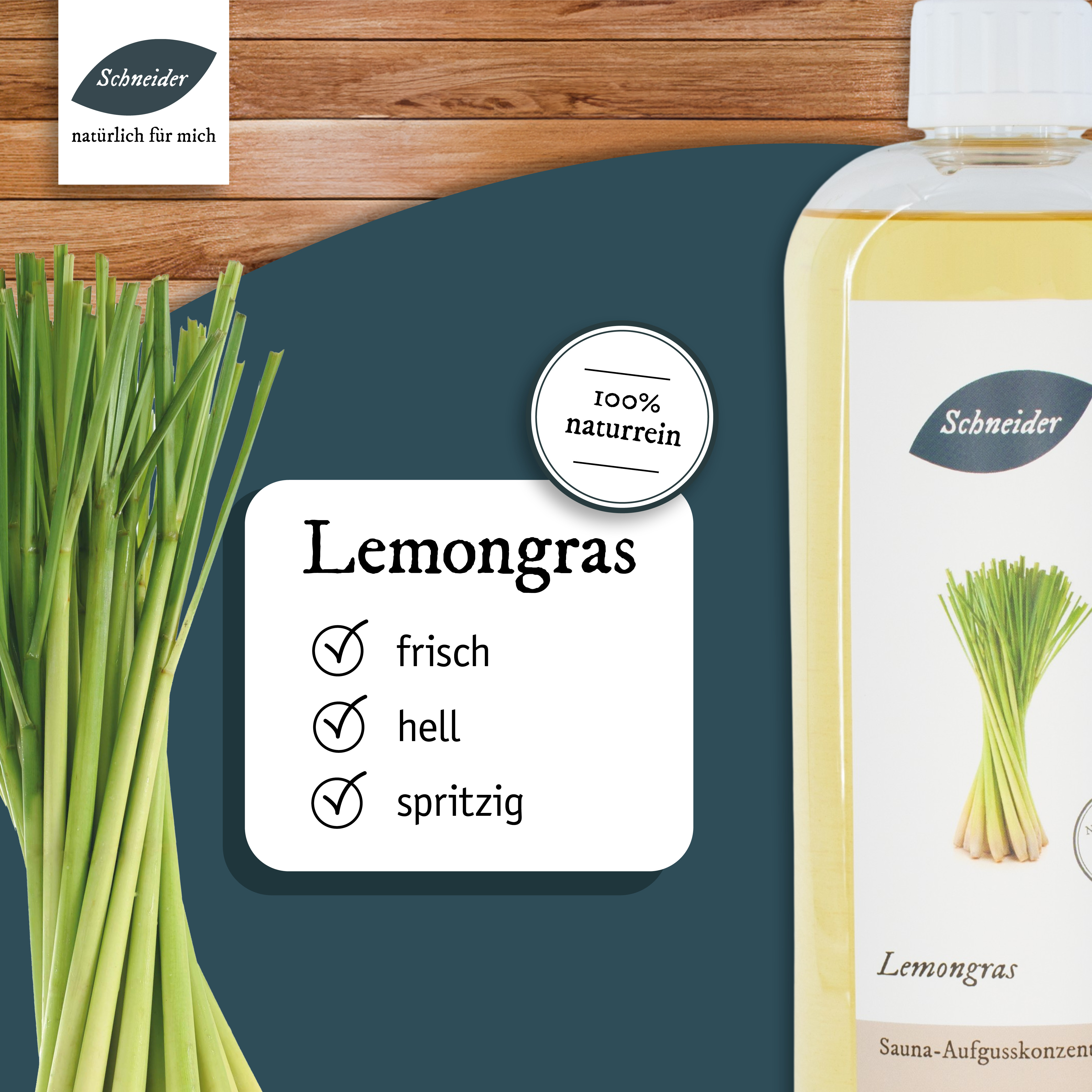 Wellness für die Seele bietet der Saunaaufguss Lemongras aus eigener Herstellung. Erleben Sie den erfrischenden, belebenden Duft von ätherischem Lemongrasöl, das die Konzentration fördern und den Geist vitalisieren kann. Auch aufgrund der anregenden Zitrus-Noten einer der beliebtesten Saunaaufgüsse. Anwendung: Die Dosierung der Aufgüsse kann abhängig sein von der Größe der Sauna, der Leistung der Heizelemente, den Vorlieben der Anwender und der Intensität der einzelnen Inhaltsstoffe (wie ätherischen Ölen, Ölgemischen oder Duftölen). Als Richtwert empfehlen wir ein bis zwei Esslöffel voll Aufgusskonzentrat oder 20 bis 25 ml Aufgusskonzentrat pro Liter Aufgusswasser. Je nach Belieben können Sie die Dosierung anpassen. Saunaaufgusskonzentrate sind sparsam zu verwenden und sollten nie pur auf die Aufgusssteine oder Heizelemente gegeben werden.