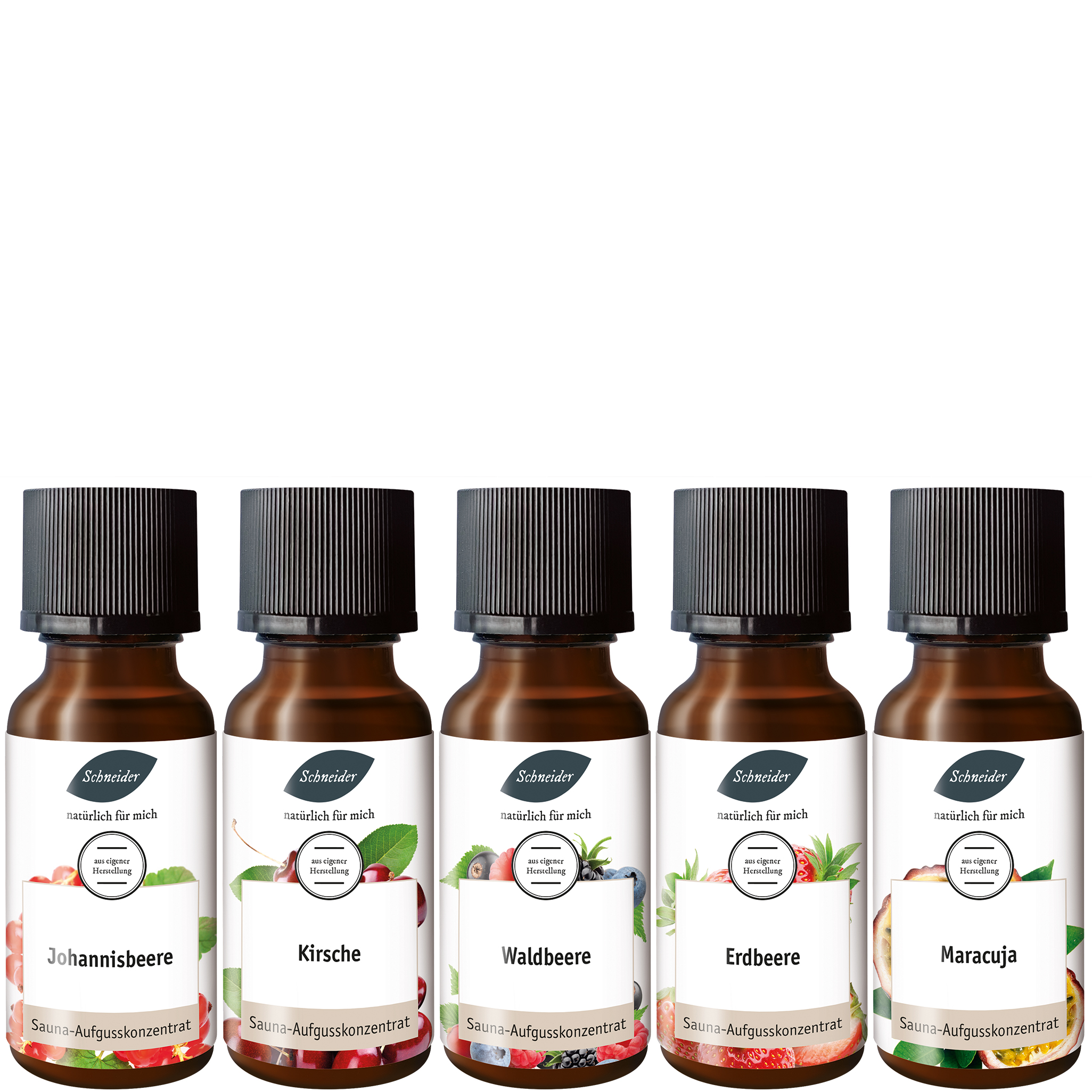 20 ml Johannisbeere, 20 ml Kirsche, 20 ml Waldbeere, 20 ml Erdbeere, 20 ml Maracuja