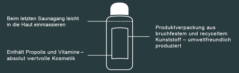 Ideal für Sauna, Dampfbad, Infrarot und Dusche. Vor dem letzten Saunagang auftragen und in der Wärme wirken lassen. Während Sie sich entspannen und sich vom milden Duft des Honigs betören lassen. Danach einfach abspülen.