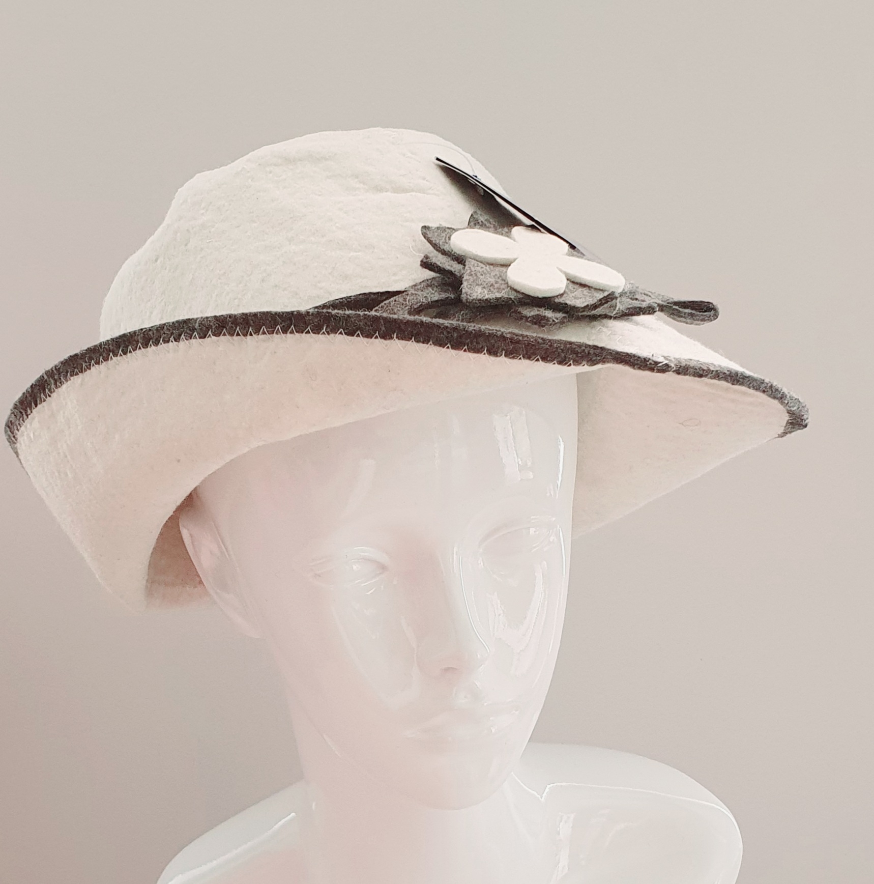Nur separate Handwäsche bei max. 30 Grad Celsius, nicht trocknergeeignet. In feuchtem Zustand lässt sich der Hut gut formen.
